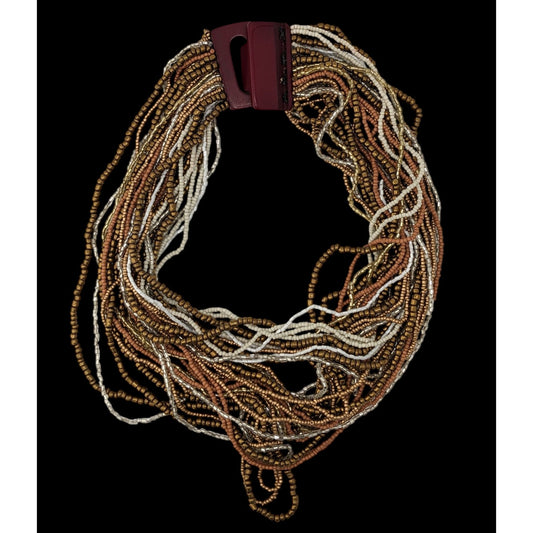 Vintage Layered Glass Beaded Necklace With Chunky Lucite Clasp