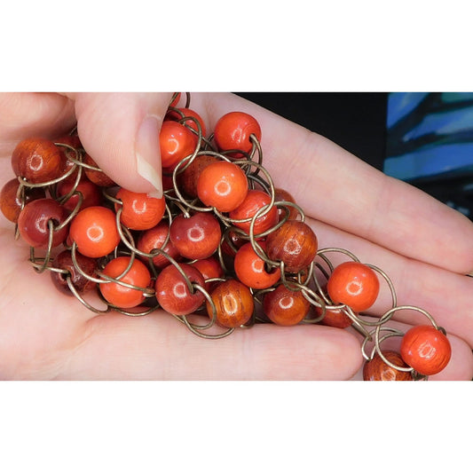 Chunky Retro Earth Tone Long Silver-Tone Chain Necklace With Multicolor Glass And Wood
