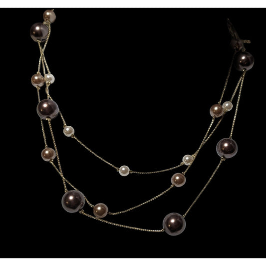 Elegant Triple Tone Graduated Glass Pearl Necklace
