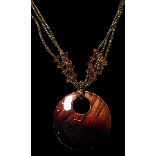 Mermaidcore Brown Beaded Shell Pendant Necklace