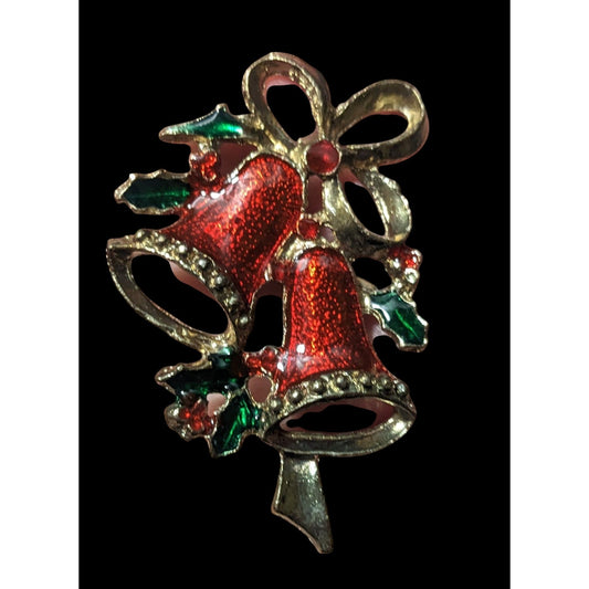 Vintage SFJ Christmas Enameled Poinsettia Brooch
