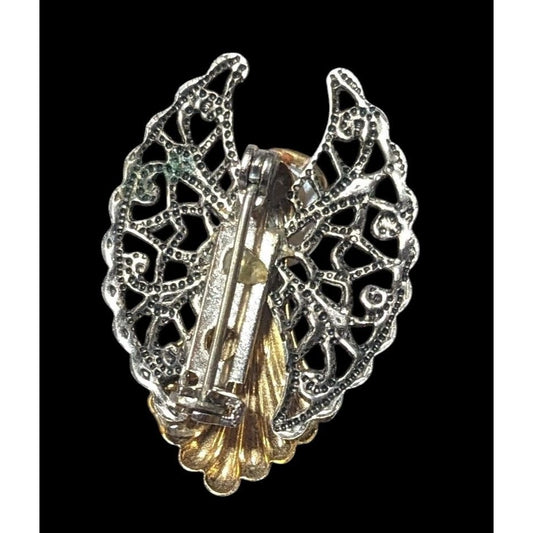 Vintage Green And Gold Enamel Holiday Wreath Brooch