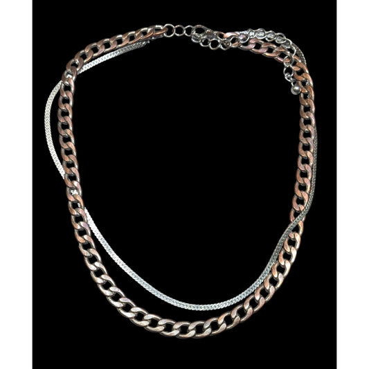 Silver And Copper Tone Multilayer Chain Necklace