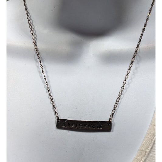 Rustic Beloved Hand Stamped Antiqued Copper Tone Necklace
