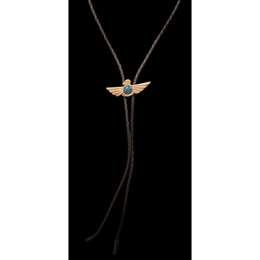 Vintage Copper Bird Bolo Tie With Turquoise Cabochon