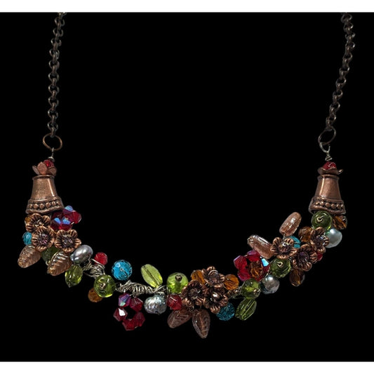 Handmade Fairycore Cottagecore Wire Wrapped Floral Beaded Necklace