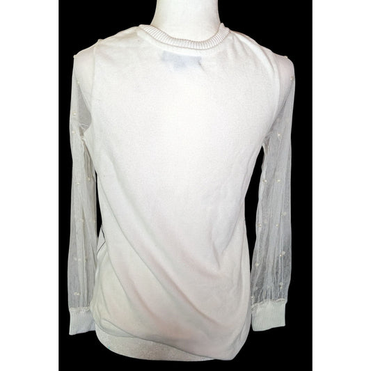 Love + Lace Paris Themed Top With Sheer Sleeves And Faux Pearl Accents