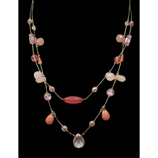 Coquette Pink And Gold Tone Beaded Station Layered Necklace