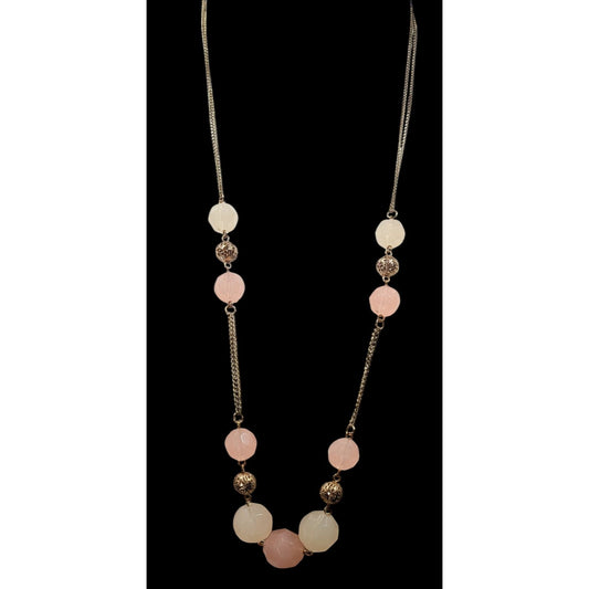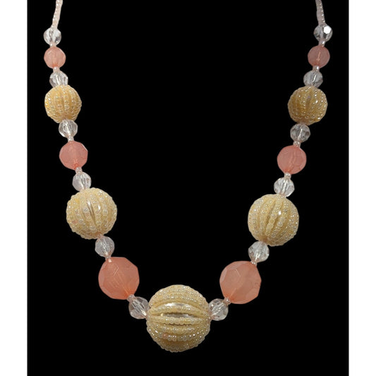 Vintage Coquette Retro Pink And Yellow Beaded Necklace
