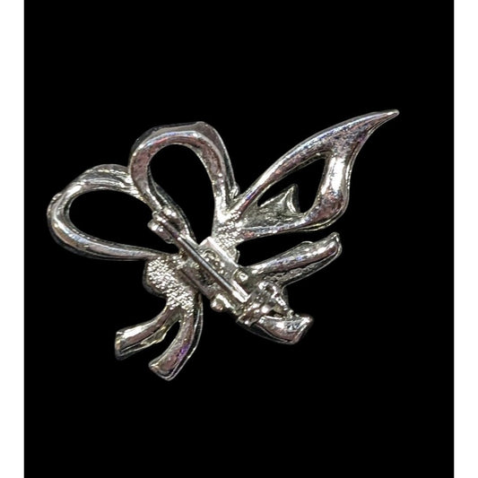 Vintage Bow Shaped Silver Tone Rhinestone Brooch