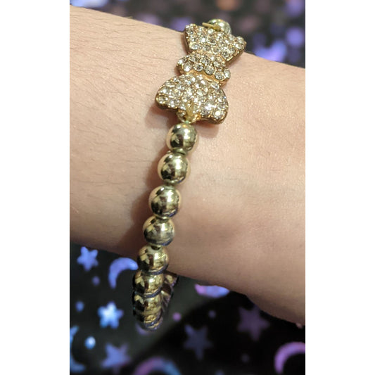 Coquette Rhinestone Bow Tie Gold Tone Beaded Bracelet