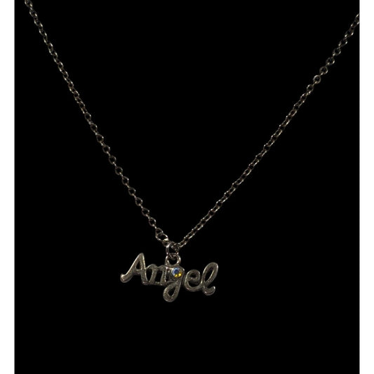 90s Y2K Style Angel Pendant Silver Tone Necklace