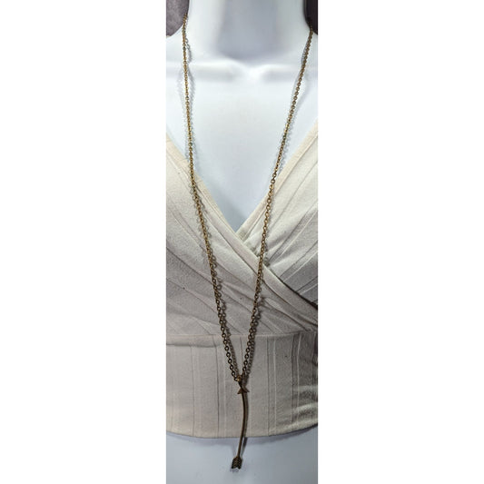 Curved Arrow Antiqued/Distressed Gold Tone Pendant Necklace