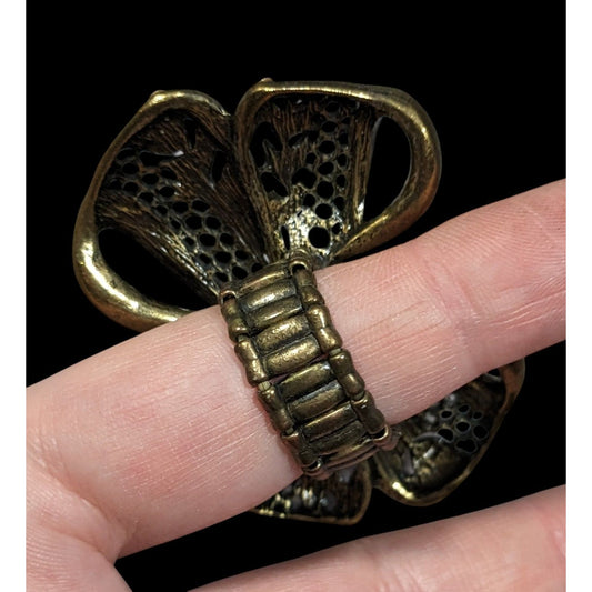 Coquette Glam Rhinestone Antiqued Gold Tone Bow Ring