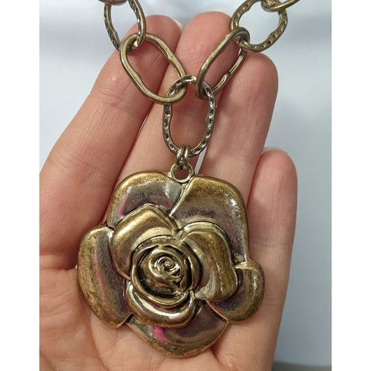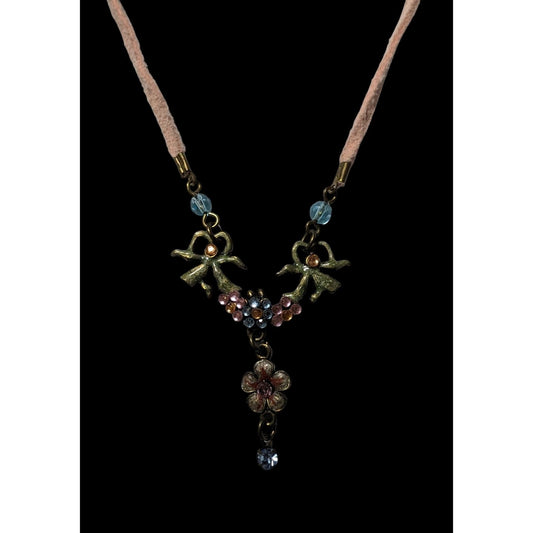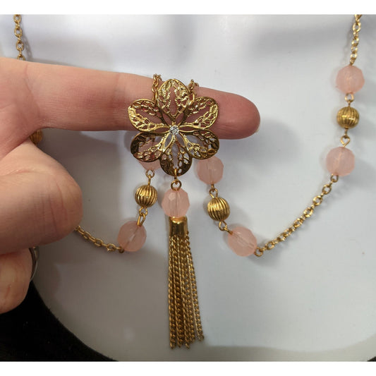 Retro Cottagecore Pink Beaded Floral Pendant Necklace