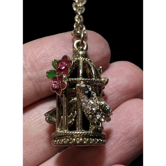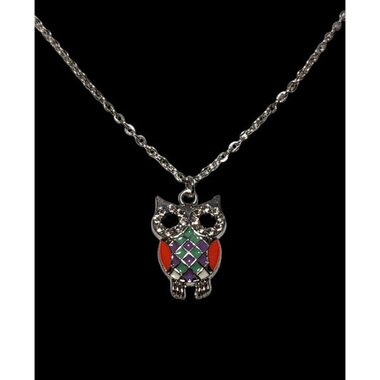 Rainbow Enamel Rhinestone Owl Pendant Necklace