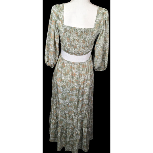 Lush Cottagecore Green Floral Dress With Lower Back Cutout