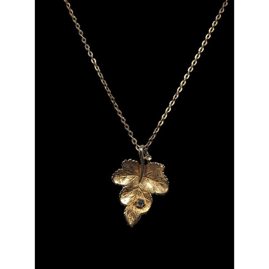 Vintage 1970s Avon Maple Leaf Gold Tone Necklace With Rhinestone Accents