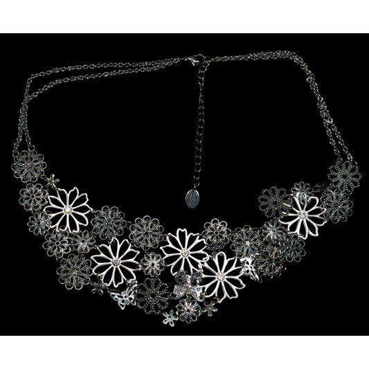 Claires Floral Fairycore Multi-Silver Tone Floral Bib Necklace