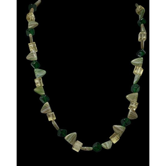 Vintage Cottagecore Green Glass Beaded Necklace