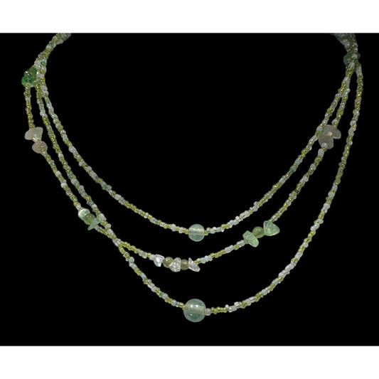Nature Inspired Green Glass Layered Beaded Necklace