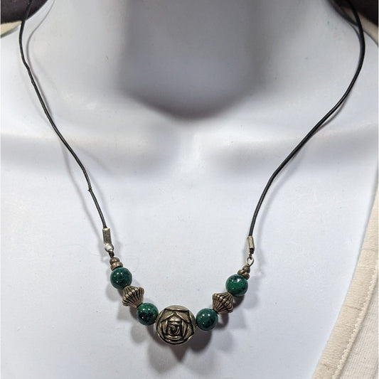 Floral Green Jasper And Silver Tone Beaded Necklace