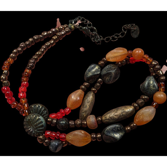 Rustic Nature Inspired Peach Pit Stone And Glass Beaded Necklace