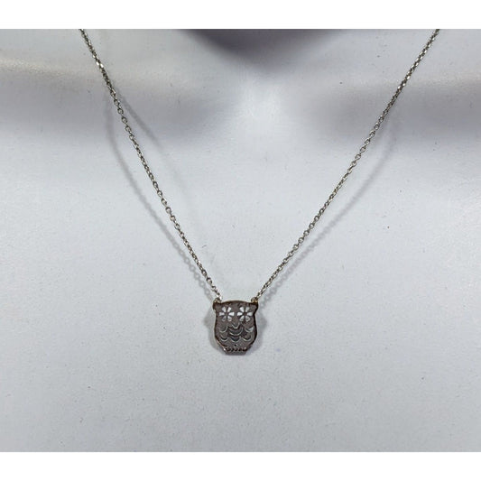 Minimalist Quirky Owl Pendant Silver Tone Necklace