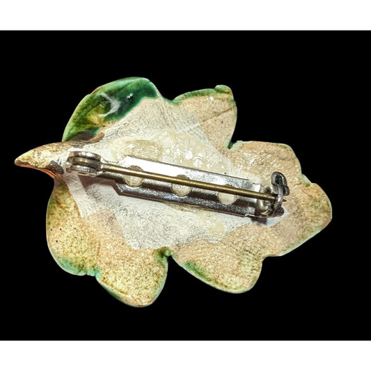 Vintage Cottagecore Ceramic Leaf With Berry Brooch