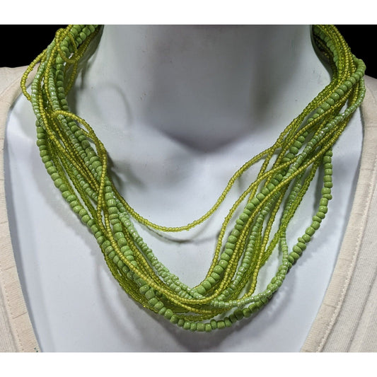 Cottagecore Green Glass Multilayer Beaded Necklace