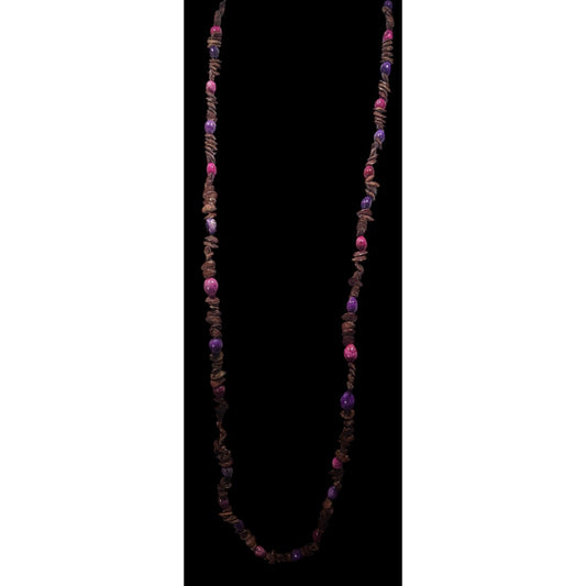 Vintage Rustic Blue And Pink Wood Beaded Braided Necklace