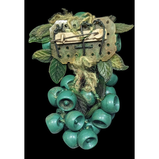 Rare Vintage Cottagecore Beaded Cascade Green Grape Vine Brooch