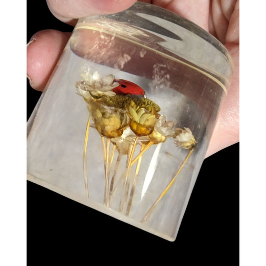 Vintage Handmade Dried Flowers And Faux Ladybug In Resin
