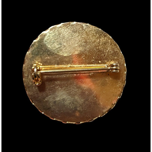 Vintage Yellow And Purple Floral Round Brooch