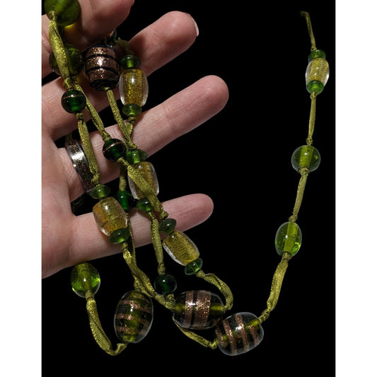 Handmade Green Glass Beaded Ribbon Necklace