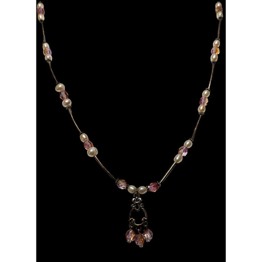 Coquette Pink And Silver Pearl Beaded Necklace