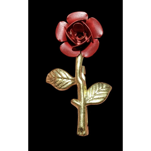 Vintage Red And Gold Metal Floral Metal Rose Brooch