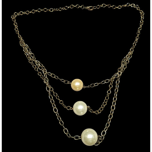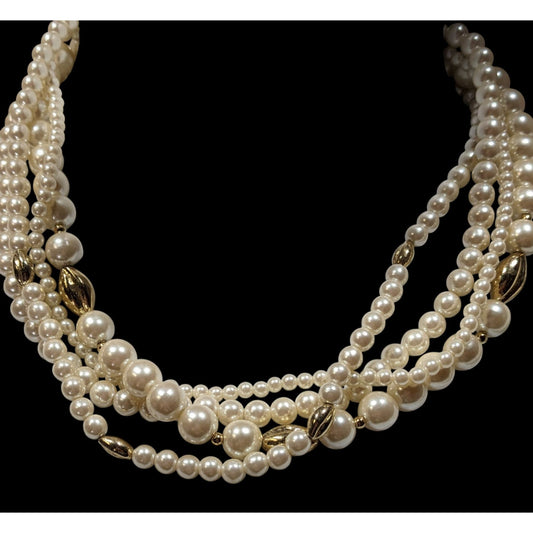 Vintage Multistrand Faux Pearl Necklace With Gold Tone Accents