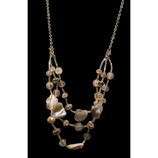 Bohemian Glam Layered Shell & Bead Necklace With Gold Chain