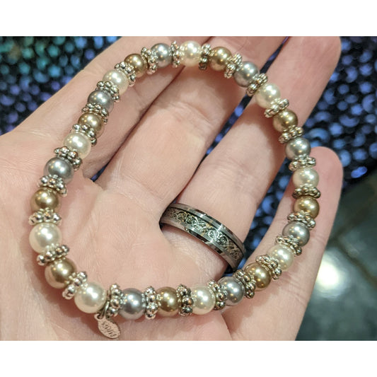 Elegant Triple Tone Graduated Glass Pearl Necklace