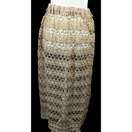 Vintage Handmade Crochet Lace Beige Maxi Skirt