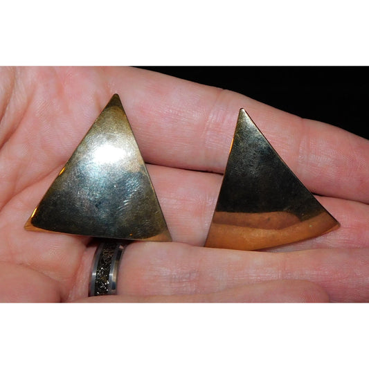 Vintage Triangle Gold Tone Clip On Metal Earrings