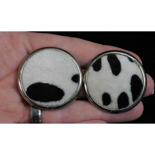 Vintage Fuzzy Animal Spot Black And White Earrings