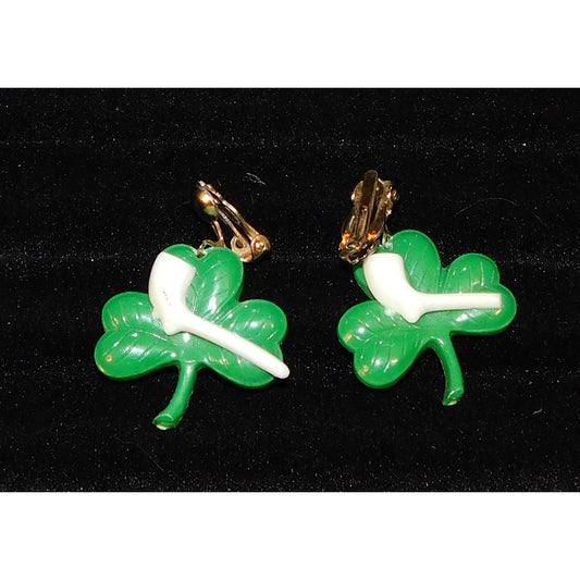 Vintage Shamrock Saint Patrick's Day Clip On Earrings