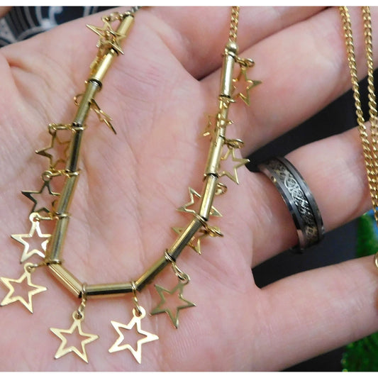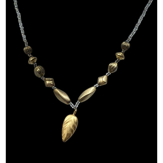 Vintage Handmade Fairycore Leaf Pendant Beaded Necklace Gold And Silver Tone