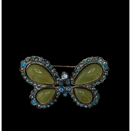 Vintage Art Nouveau Butterfly Fairycore Shimmer Brooch In Blue And Green