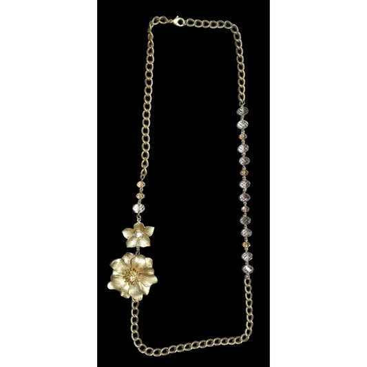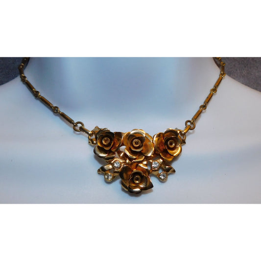 Vintage Romantic Gold Rose Rhinestone Necklace