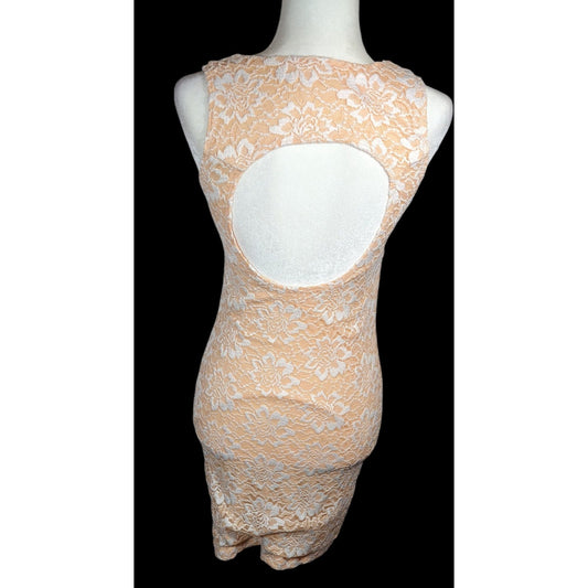Alt. B Peach And White Floral Keyhole Open Back Bodycon Dress