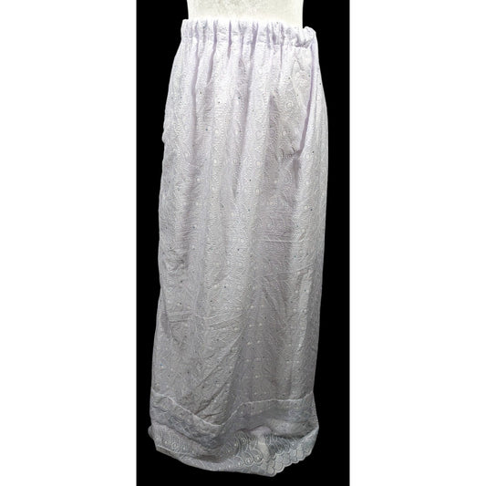 Handmade Floral Embroidered White With Purple Tint Maxi Skirt