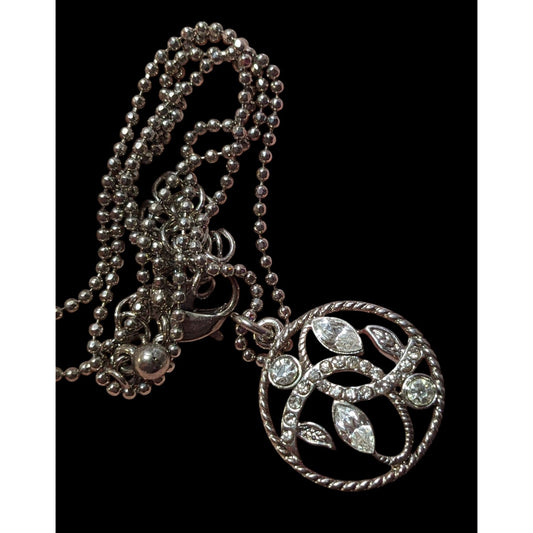 Fantasy Floral Rhinestone Silver Tone Pendant Necklace